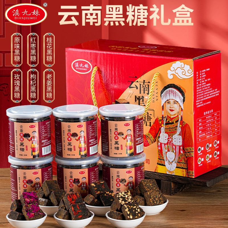 楚九妹雲南手作り黒糖紅糖6種類の味黒糖ギフトボックス糖礼娘プレゼント卸売りサポート