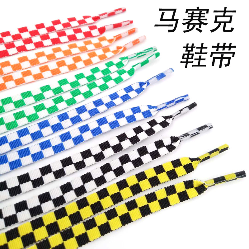 モザイクファッション靴ひも格子靴ひも男女キャンバススポーツレジャー板靴フラットバスケットボール靴色靴ひも