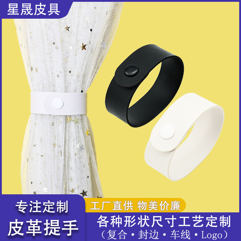 工場卸売PUレザー製カーテン結束バンド、穴あけ不要のカーテン留め具、布製タイ、革製ドアカーテン結束紐、タイバンド
