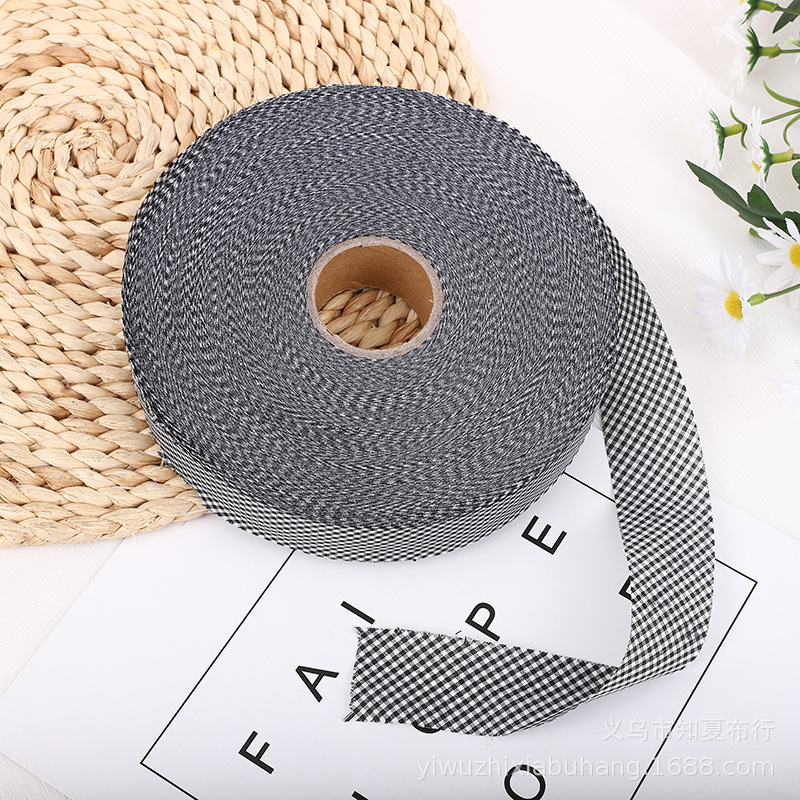 各種素材の縁取りテープ卸売 ポリエステル糊付け白黒格子斜めカット45度ポリエステル綿サテン光沢のあるフリース