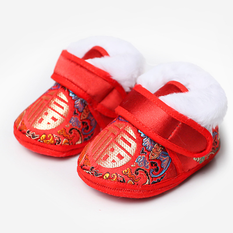 新しい冬の古着靴女の子中国風雪地靴刺繍靴子供綿靴漢服靴新年靴