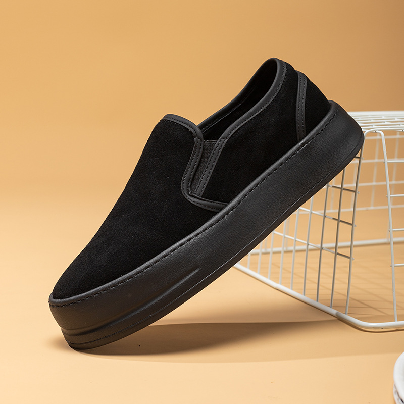 黒の紳士靴、スケートボードシューズ、ラウンドトゥのスリッポンシューズ、カジュアルな軽量スポーツシューズ、男性用の外国貿易クロスボーダーフラットシューズ
