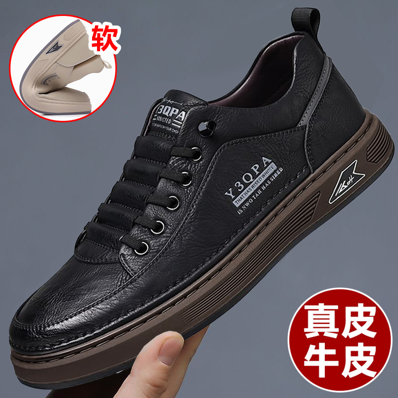 【トップ牛革】本革男性靴春と秋の新型カジュアル革靴男性の足は柔らかい皮の柔らかい底のお父さんの靴を踏んでいます。