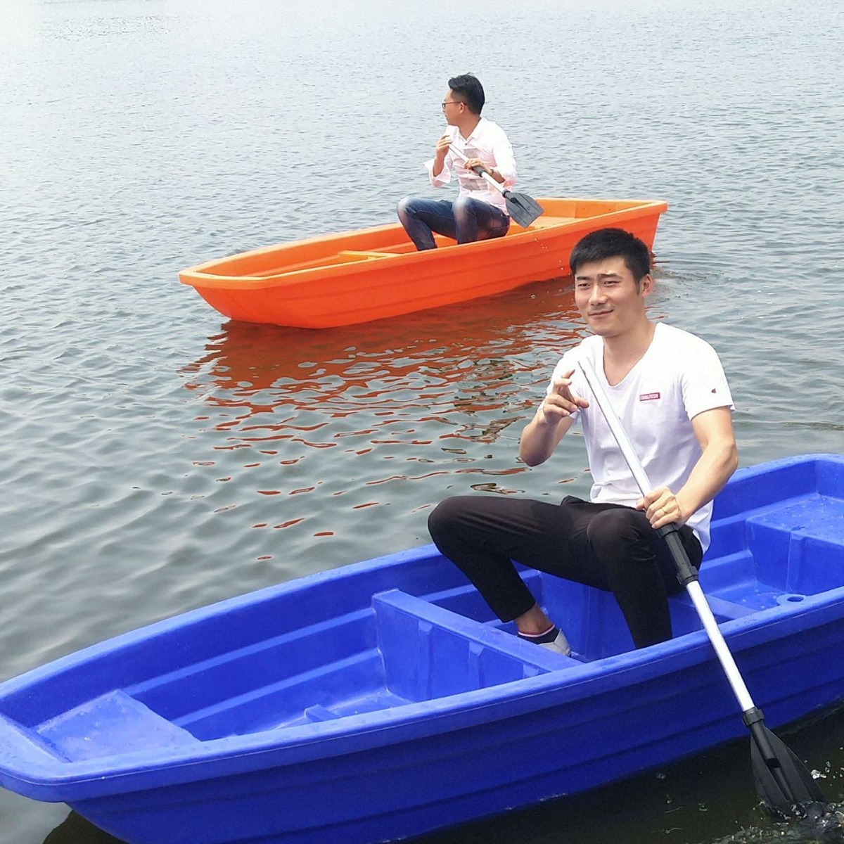 三人船親子船カヌープラットフォーム舟団建公園観光プロジェクトプラスチック船はパドル背もたれ救命服を含みます。