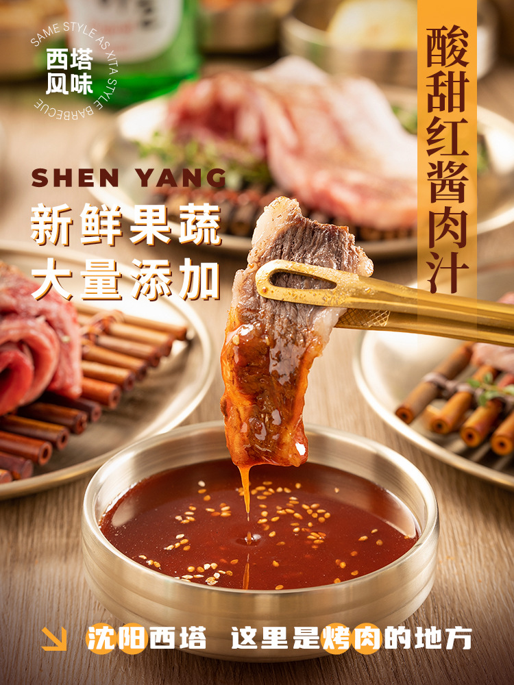 シタバーベキューショップ 甘酸っぱい赤ソース バーベキューディップソース 韓国バーベキュー 甘酸っぱい野菜 レタス 豚バラ肉ディップソース