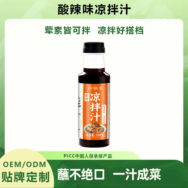 酸辣冷菜汁、拍黄瓜牛肉涼皮、涼麺調味料、海鮮冷菜汁、白煮汁、卸売、秘伝のレシピ