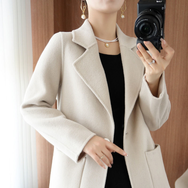 韓国のカシミヤのコートの中の長さの22秋冬のウールのコートの両面はスーツの襟の毛です。コートの女性は背が低いです。