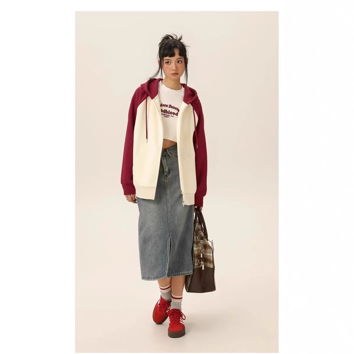 2025 ヨーロッパとアメリカの新しいフード付きカラーブロックシルバーフォックスベルベットカレッジスタイルプラスベルベットスウェットシャツジッパーパーカーラグランスリーブジャケット