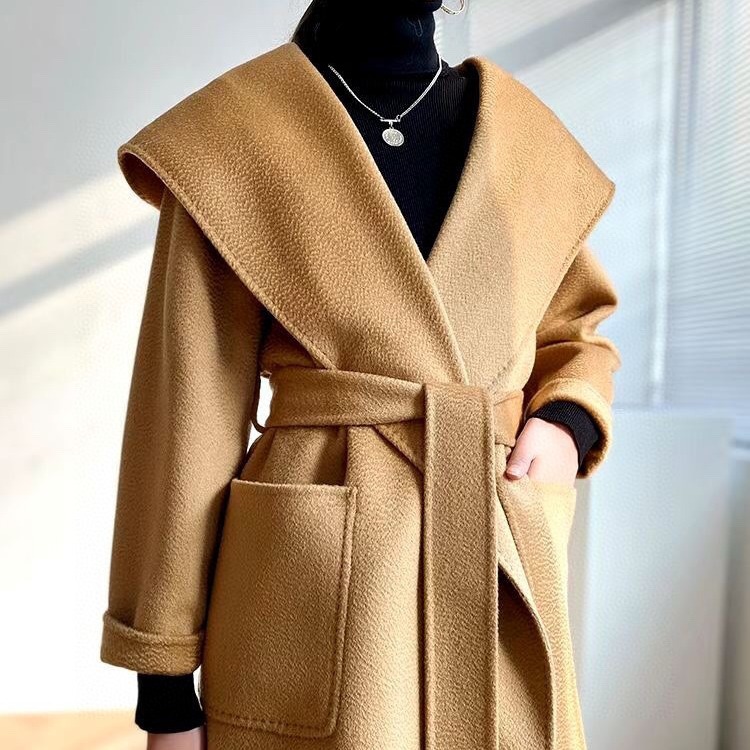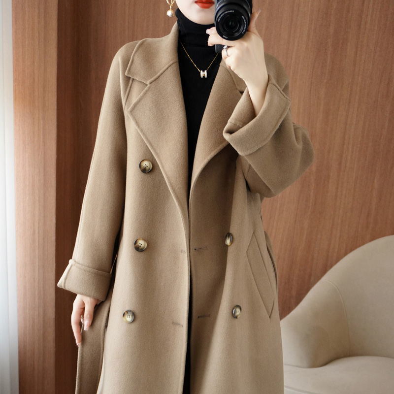 2025年加工カスタム水波紋両面カシミヤコート、ゆったりバージョン、バスローブ風ウールコート、ゆったり着痩せ効果