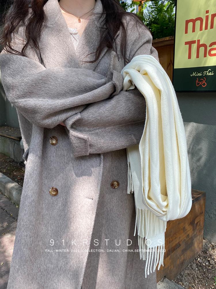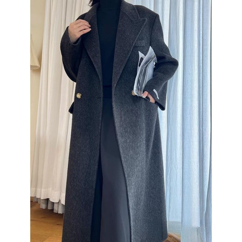 101801秋冬新作100ウールスーツ襟両面カシミヤコート女性ミディアムロングラシャコート