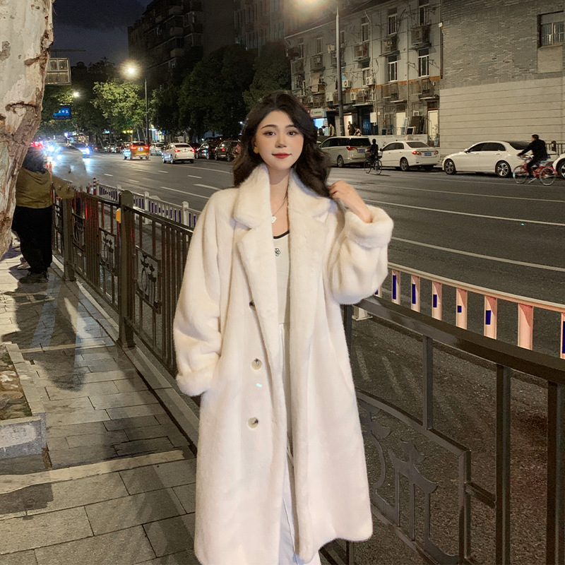 欧米の国境を越えたアマゾンの女性秋冬の新しい襟の長袖の純色の両面の毛の長い毛のコートの女性