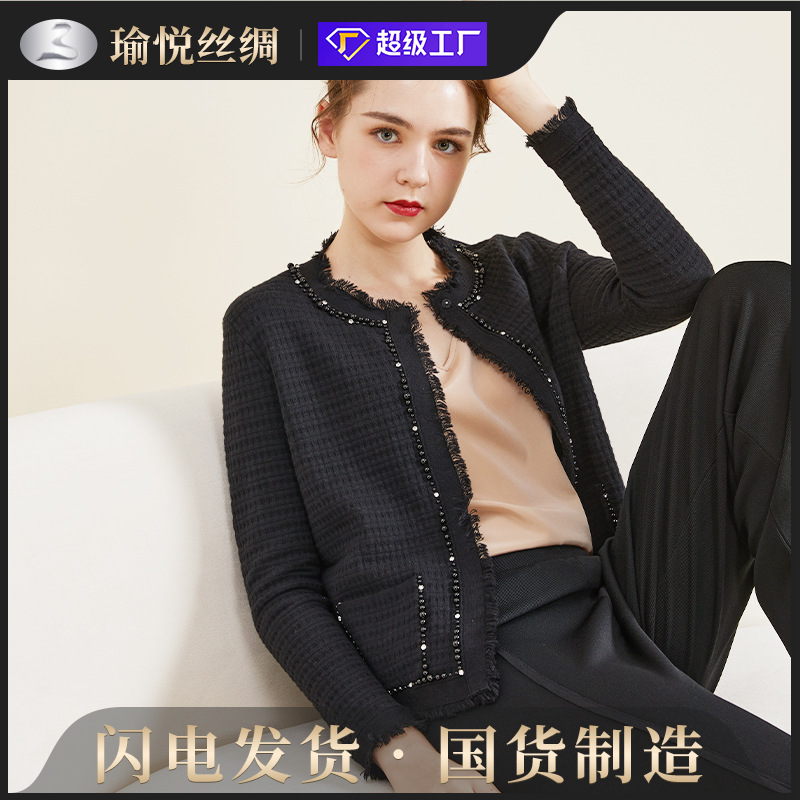 【加工オーダー】シルクのカシミヤと綿の混紡の香りですね。コートの名媛風釘珠ニットカーディガンの上着