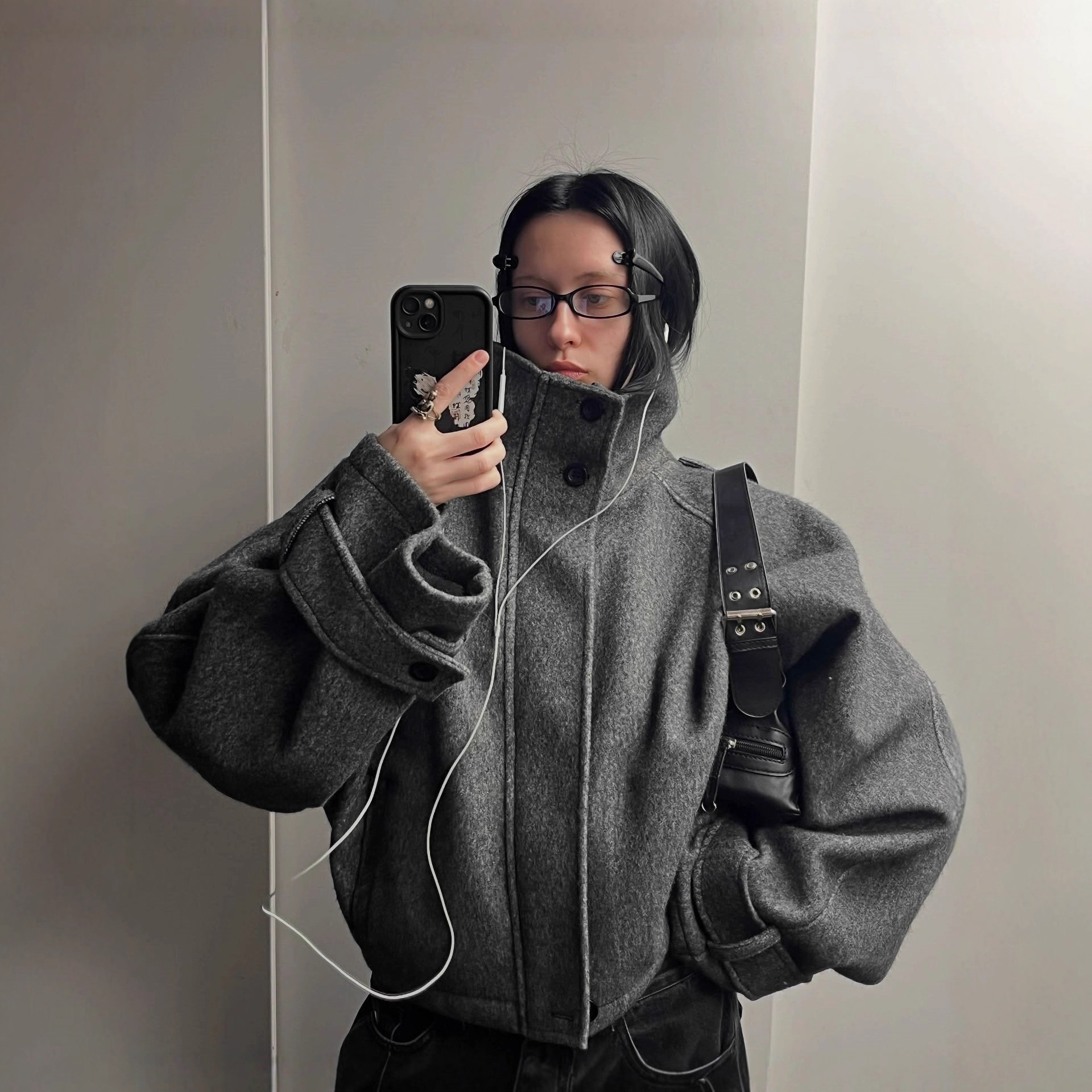 2025年秋の越境ECで人気の韓国風ゆったり万能スタンドカラーショートウールコート