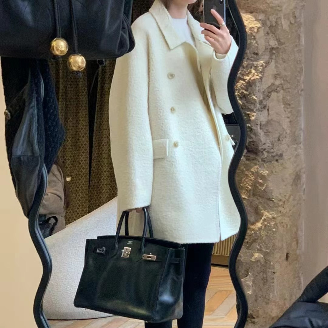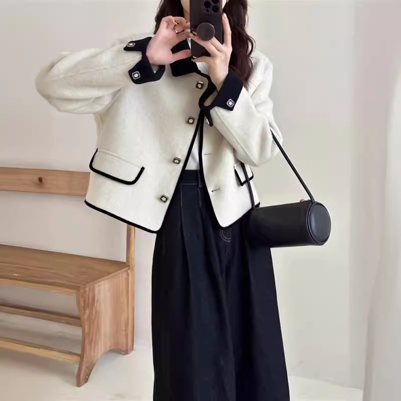 フレンチスタイルショートコート2025冬新作韓国風レディースゆったり配色高級ウールコートA2830