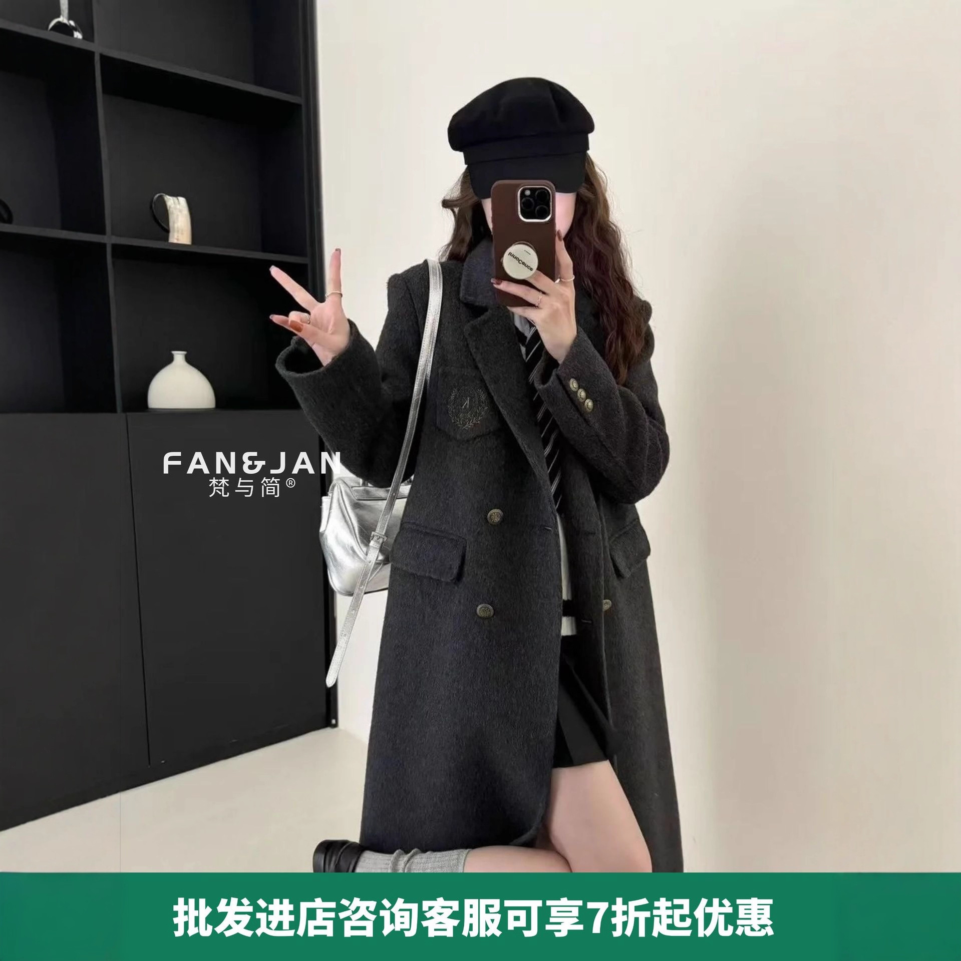 2025款双面羊毛大衣手工缝制100羊毛呢外套韩版宽松MRT115