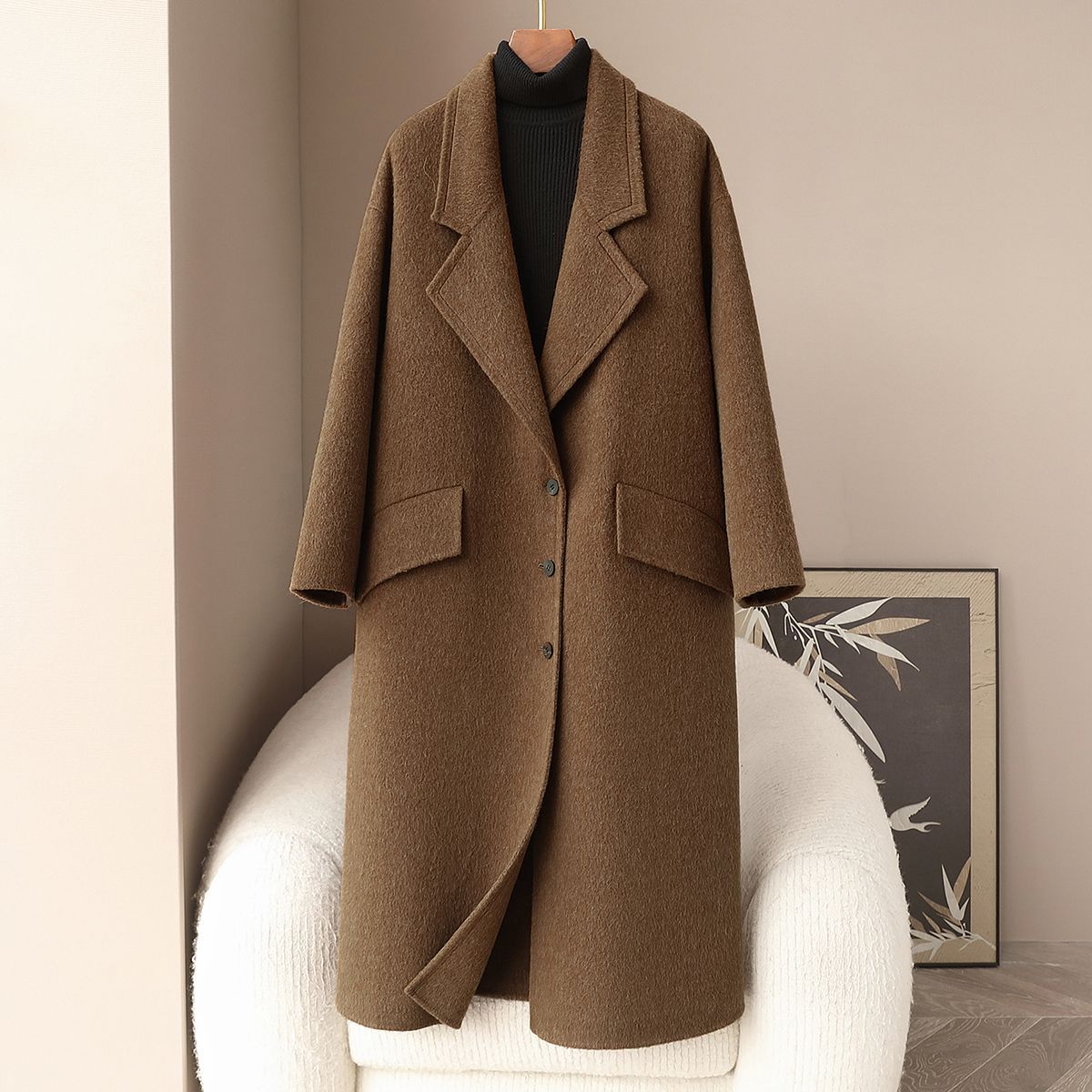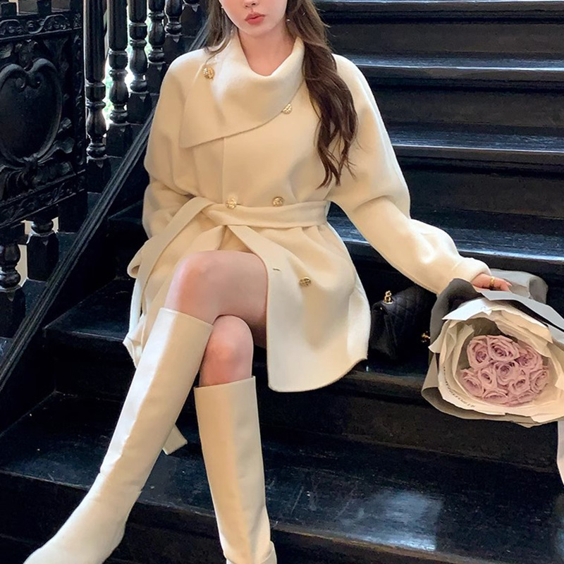 両面手縫い韓国風高級シンプル気質ウールコートレディースウールコート