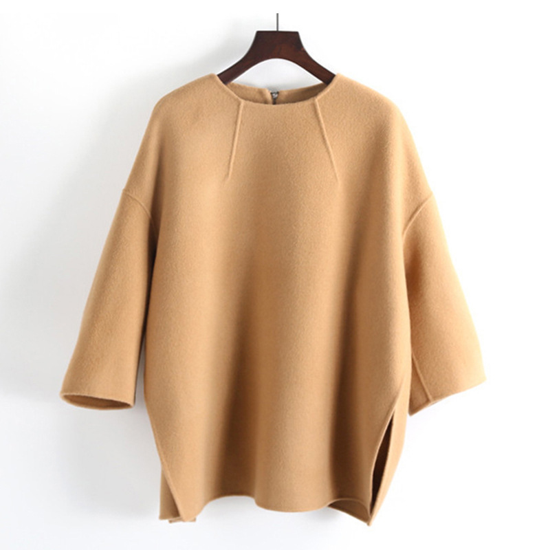 大きいサイズの婦人服のウールコートの女性の中の長さの2023秋冬の新型のゆったりしているハイエンドの両面の絨毛のコートです。