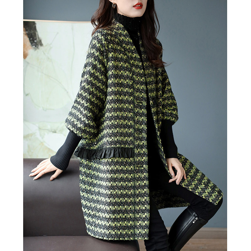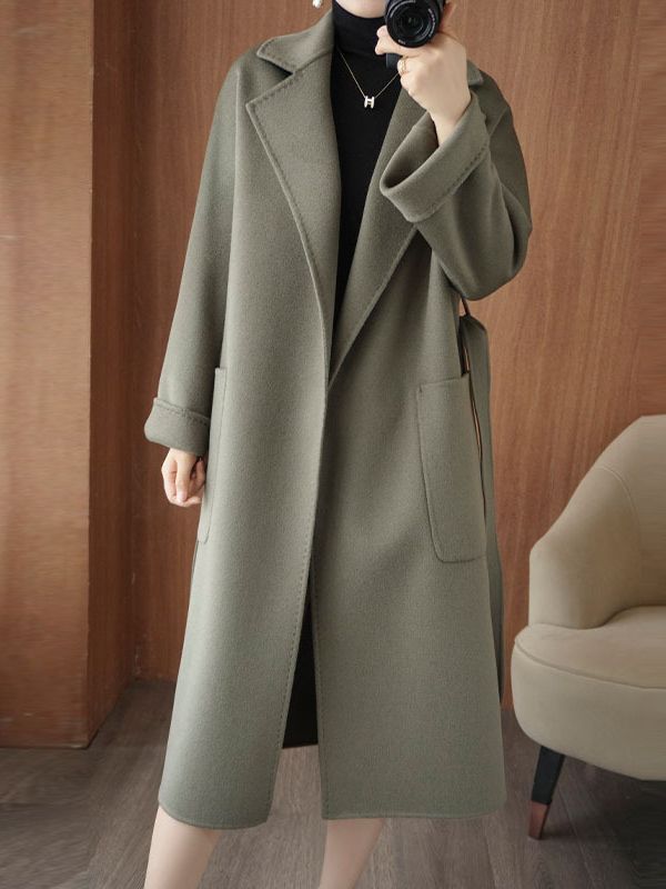 春と秋冬の暖かいウールコートレディースミディアムロングシンプル長袖レディースウールコートロング