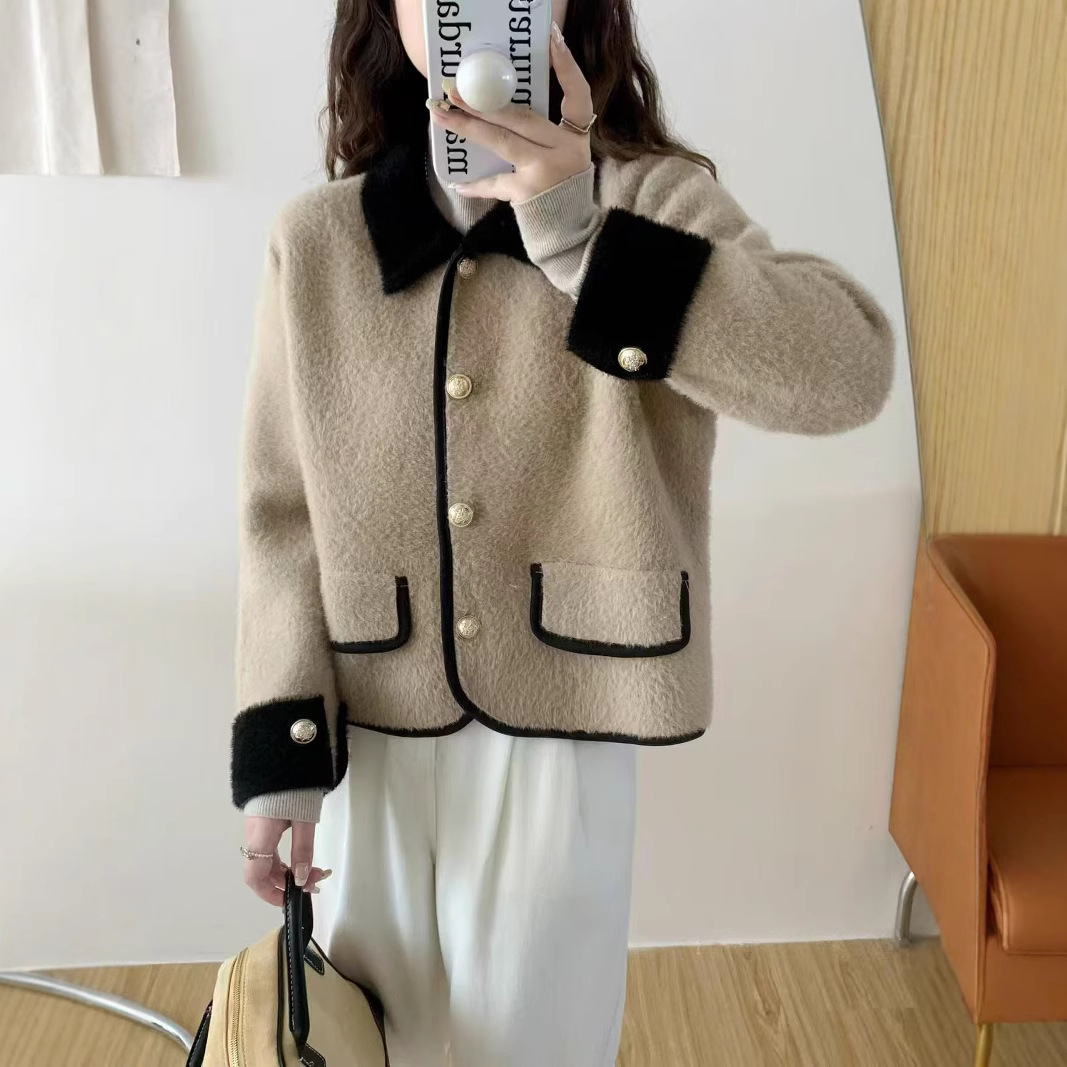 ベルベットは毛を厚くしていますねコートの女性2023の短い秋冬の小柄なゆるい反季スーツの襟の毛のコート