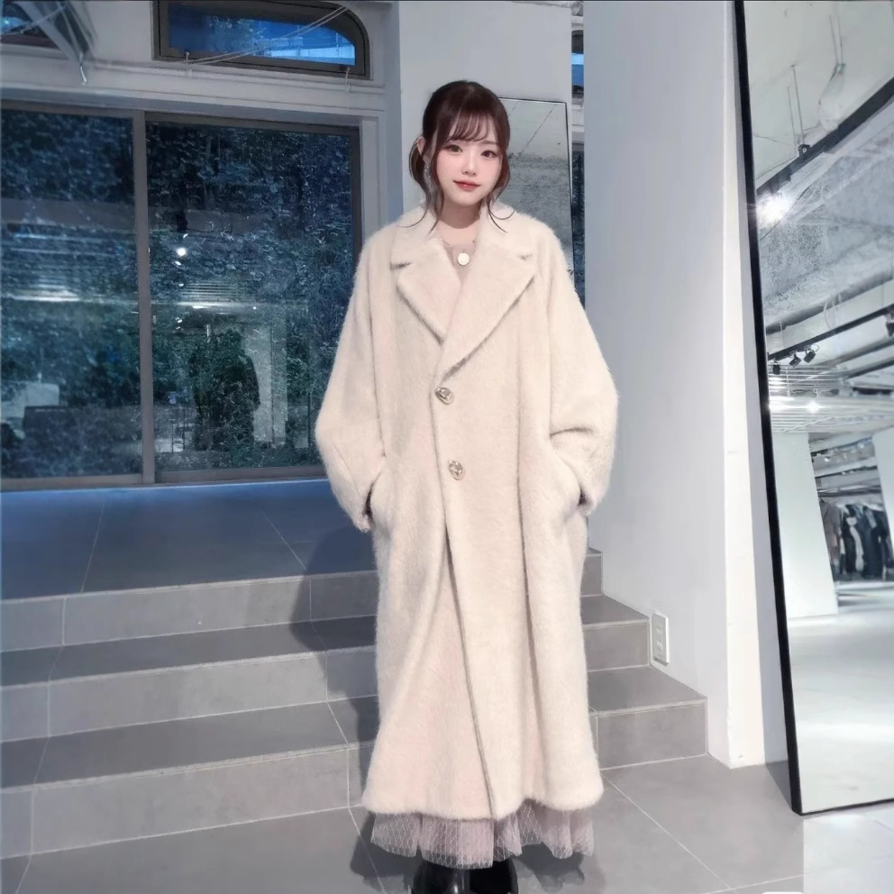 韓国版の毛のコートの女性の中で長いタイプは細くてゆったりしています。