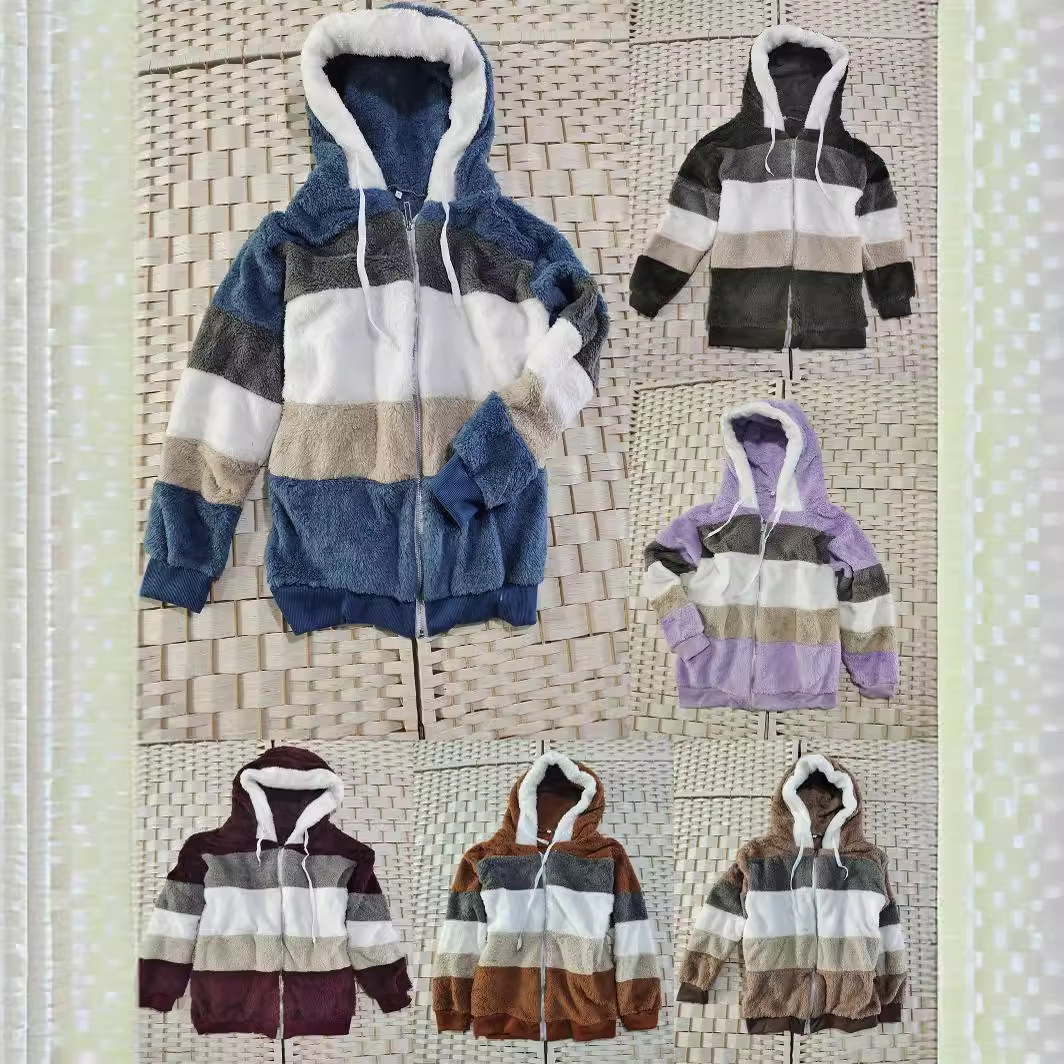 2024欧米の国境を越えたアマゾン秋冬の女性のぬいぐるみと帽子のボタンポケットカーディガンのカジュアルコートの婦人服