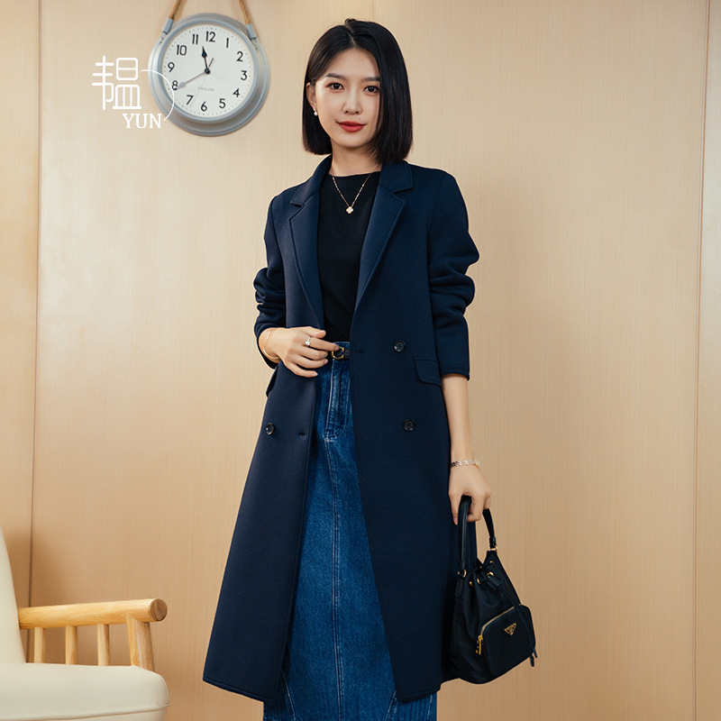 中長の襟の両面のカシミヤのコートの女性の2024秋冬の新型の富家の千金の純色のマントの毛のコート