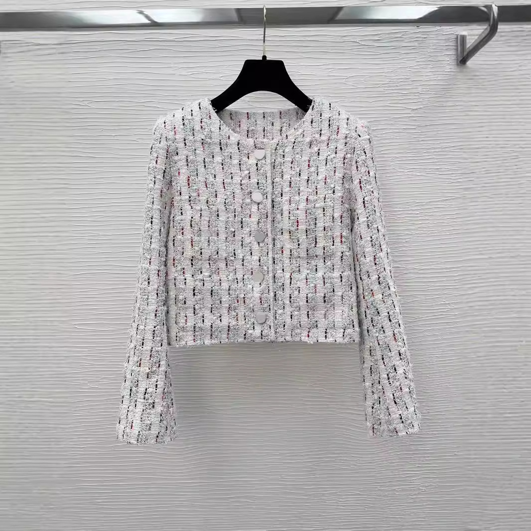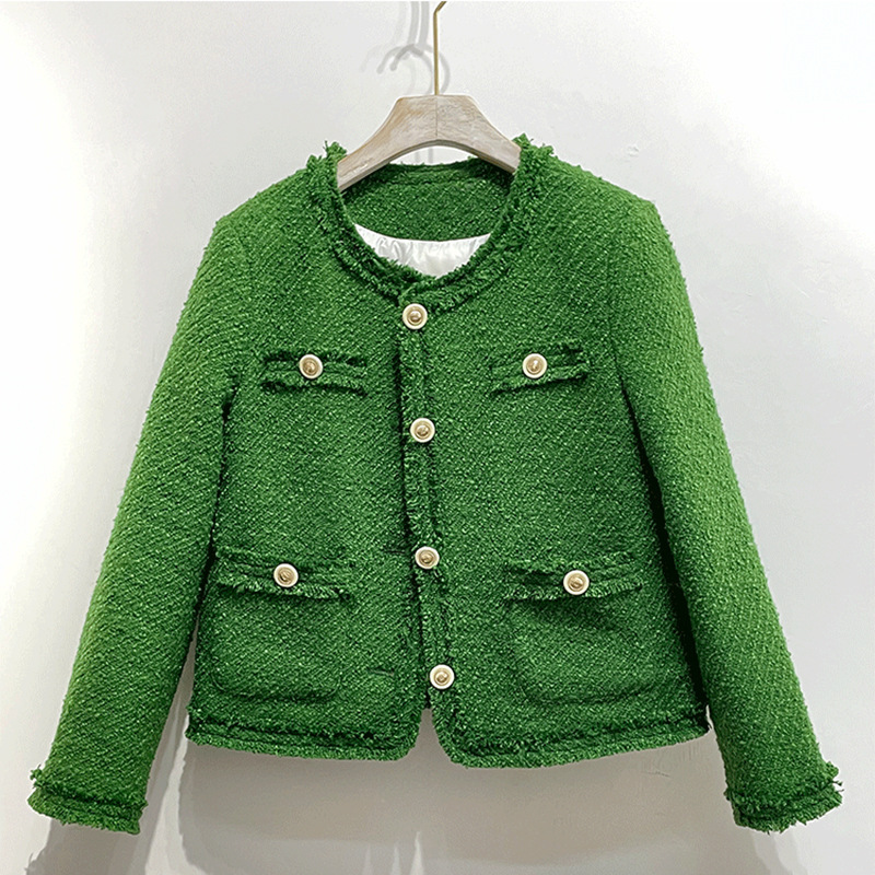 小香風復古粗花上着女装コート2023新品丸襟ゆるいカーディガン毛香風コート女