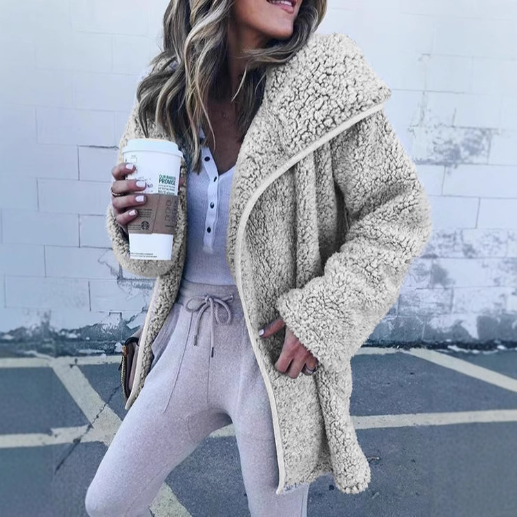 国境を越えた欧米の秋冬のぬいぐるみコートアマゾンは、純色の子羊の毛長袖コートのカーディガンの婦人服をめくった