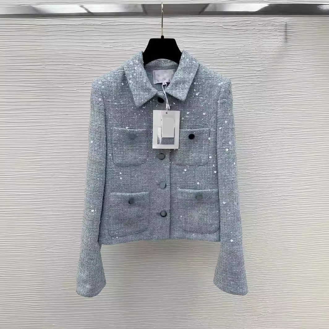 深セン南油原単私用水路牛貨物重工亮片四袋格紋肩小香風編花の短いコート