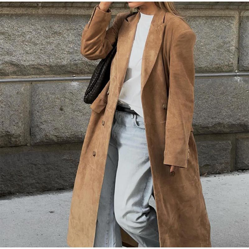 実写-ロングタイプの綿毛コートのコート2024欧米の国境を越えたファッション女性秋冬のゆるいダブルボタンのコート