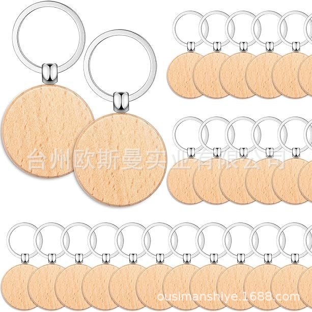 工場卸売在庫あり 木材にレーザー彫刻が可能 個性的なキーホルダー 小さなギフト ブナ材木製キーホルダー