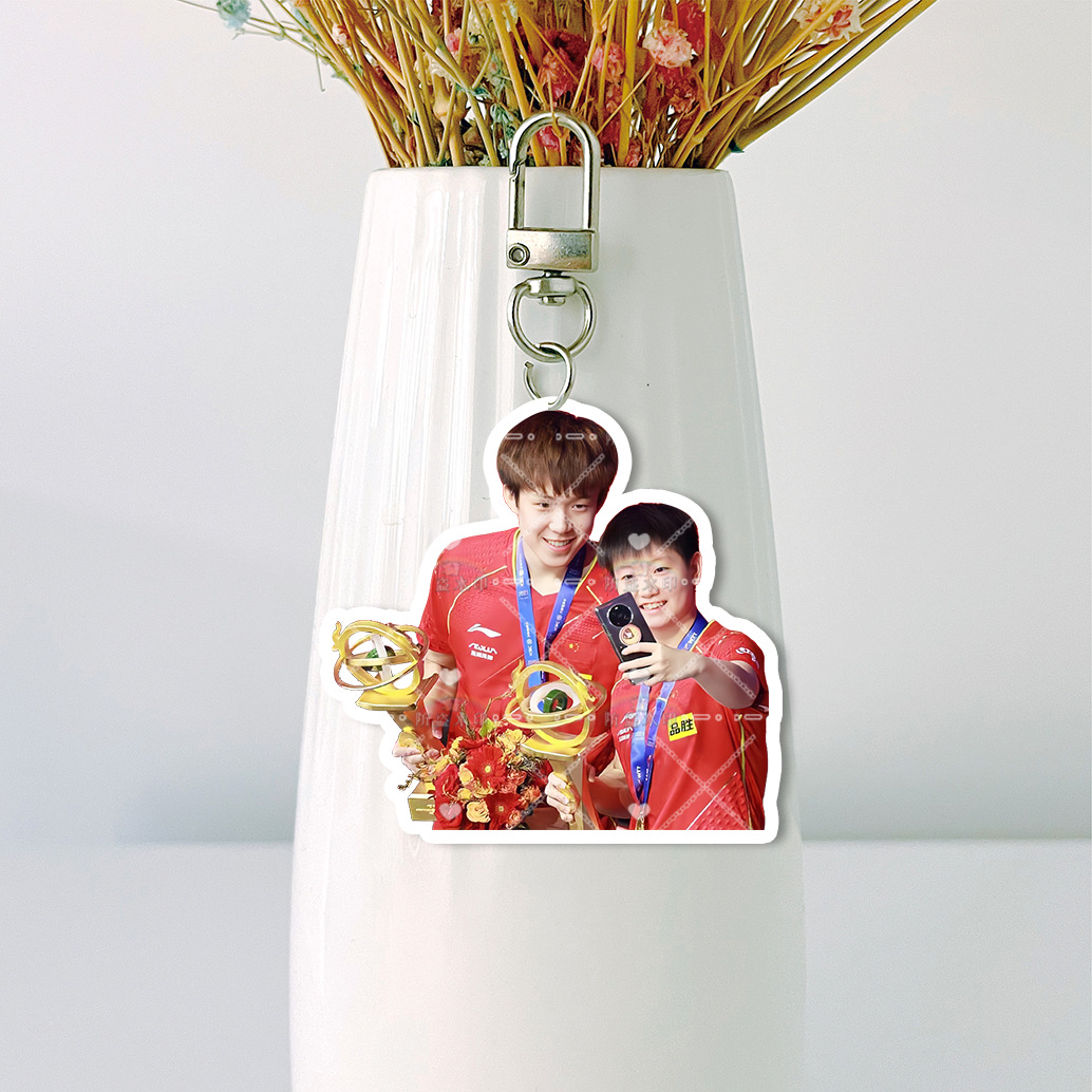 孫穎莎王楚欽白底アクリル両面キーホルダーのカバンのストラップを応援します。