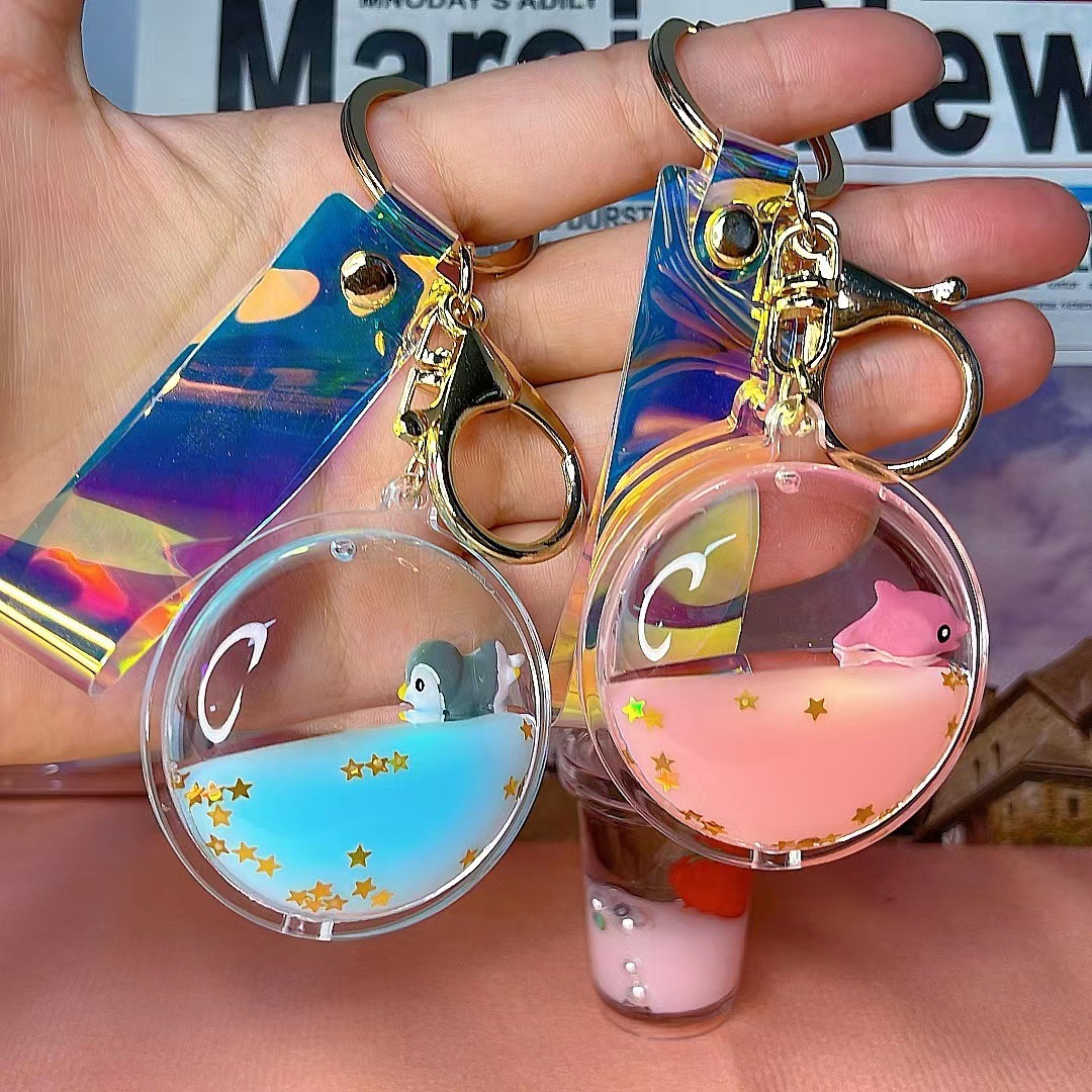 クリエイティブ入油海洋動物ペンギンのキーホルダー卸売りネット赤かばんストラップins風自動車キーホルダー