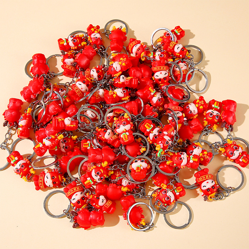 竜年のキーホルダー新年の自動車のペンダントpvcカードのチェーンの贈り物のかばんは装飾の小さい贈り物を包んで卸売りします。