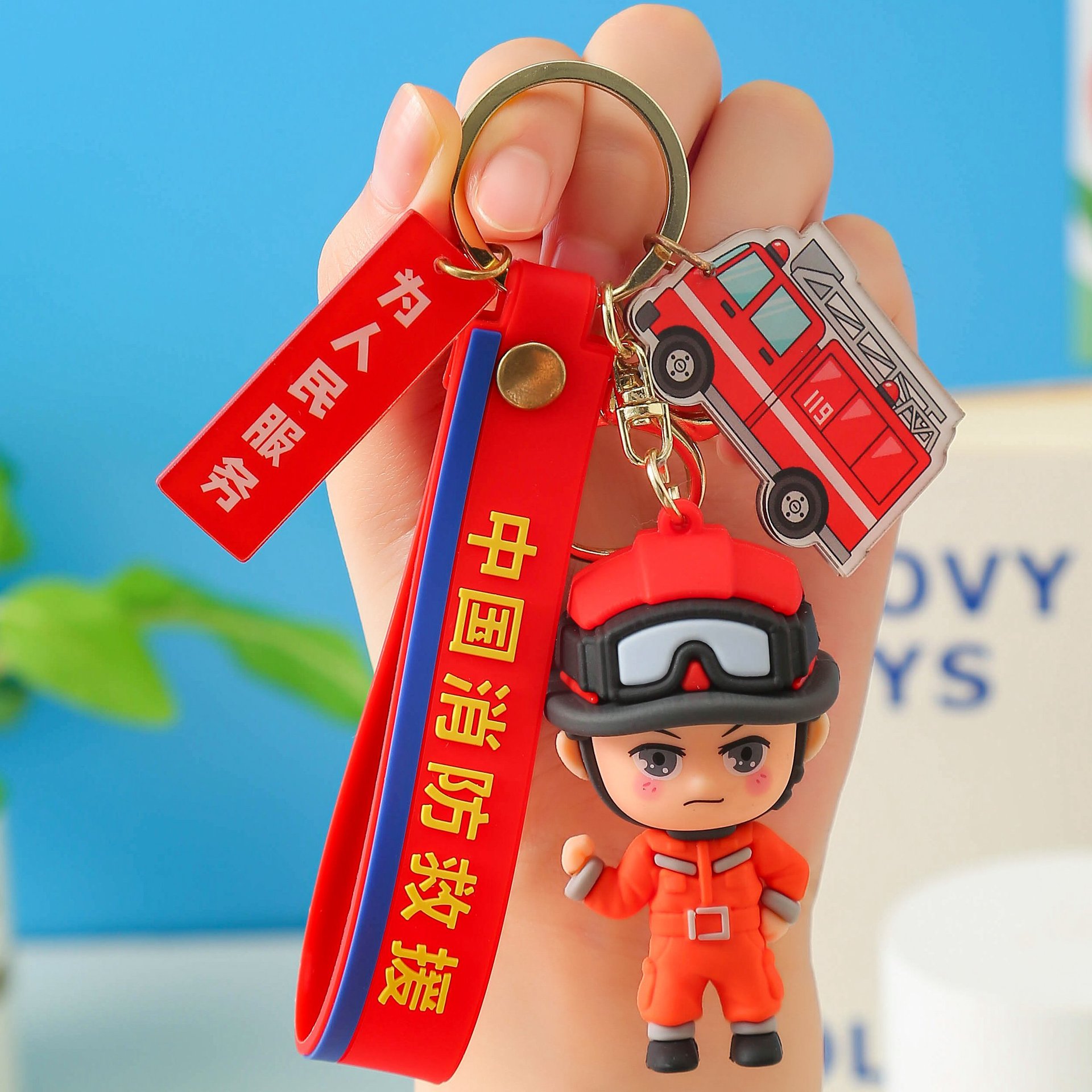 アニメ警察のキーホルダー公仔消防士交通警官バッグ自動車掛け消防宣伝小プレゼント卸売り