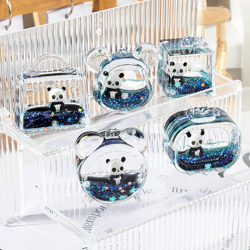 黒い満天の星のパンダの公仔は油の流砂の瓶に入ってアクリルのキーホルダーの部品を並べて包みます。