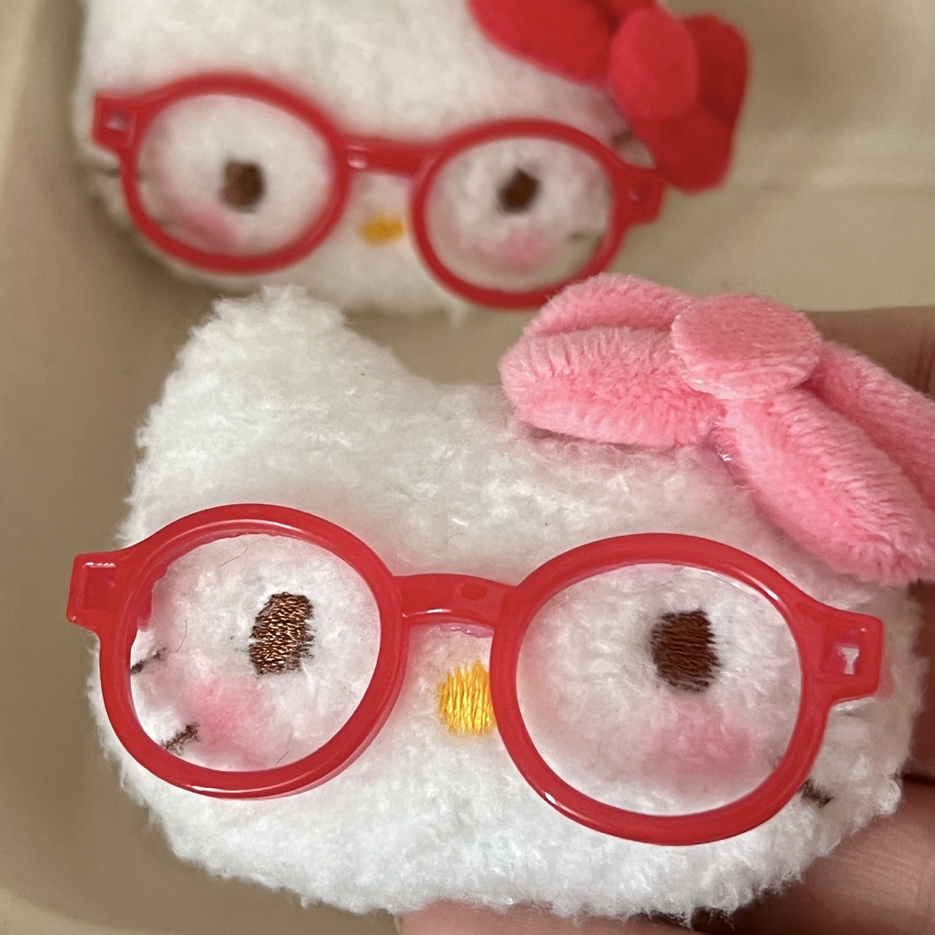 レトロy2k赤メガネKTチーク超可愛いぬいぐるみKT猫ブローチペンダント
