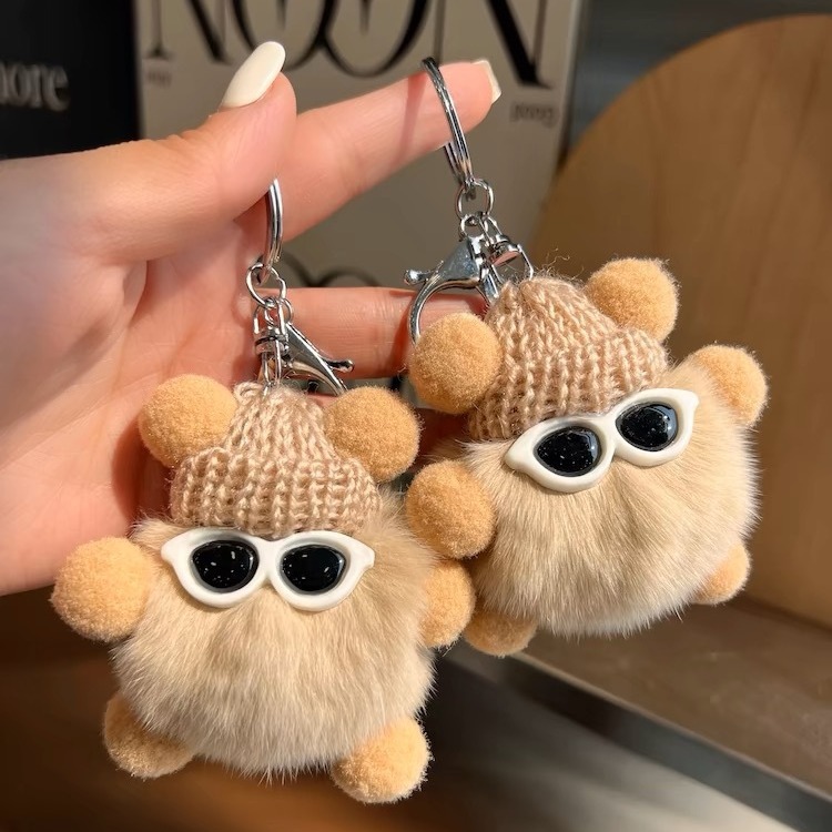 かわいいウサギの毛の小さい石炭のボールはキーチェーンのカバンのぬいぐるみのぬいぐるみの車のキーホルダーを掛けます。