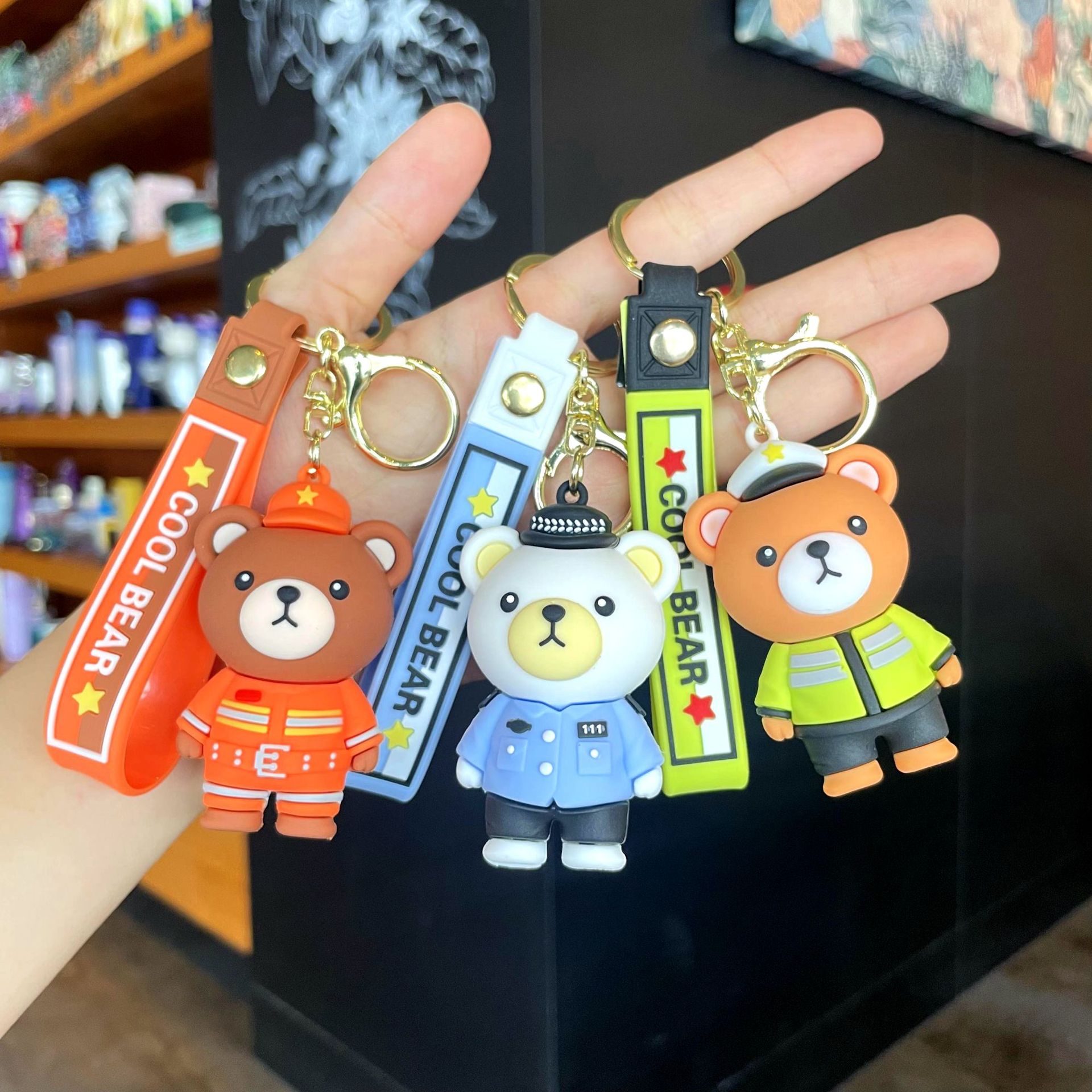 漫画滴ゴム交通警官消防士ベアーのキーホルダー宣伝プレゼントファッションカップルアクセサリーかわいいかばんチェーン