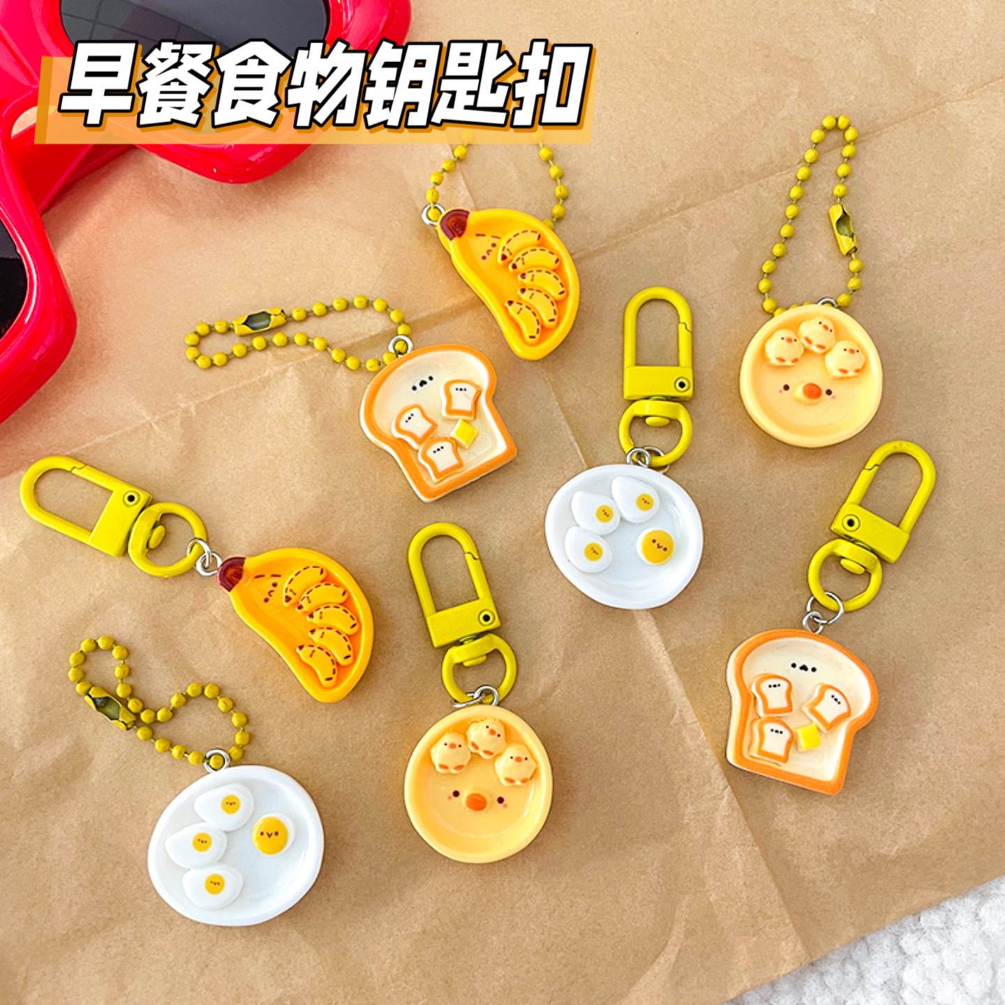 アニメかわいい朝食皿ストラップ趣味シミュレーション食遊びキーホルダーバックパックアクセサリーカップルの親友キーホルダー