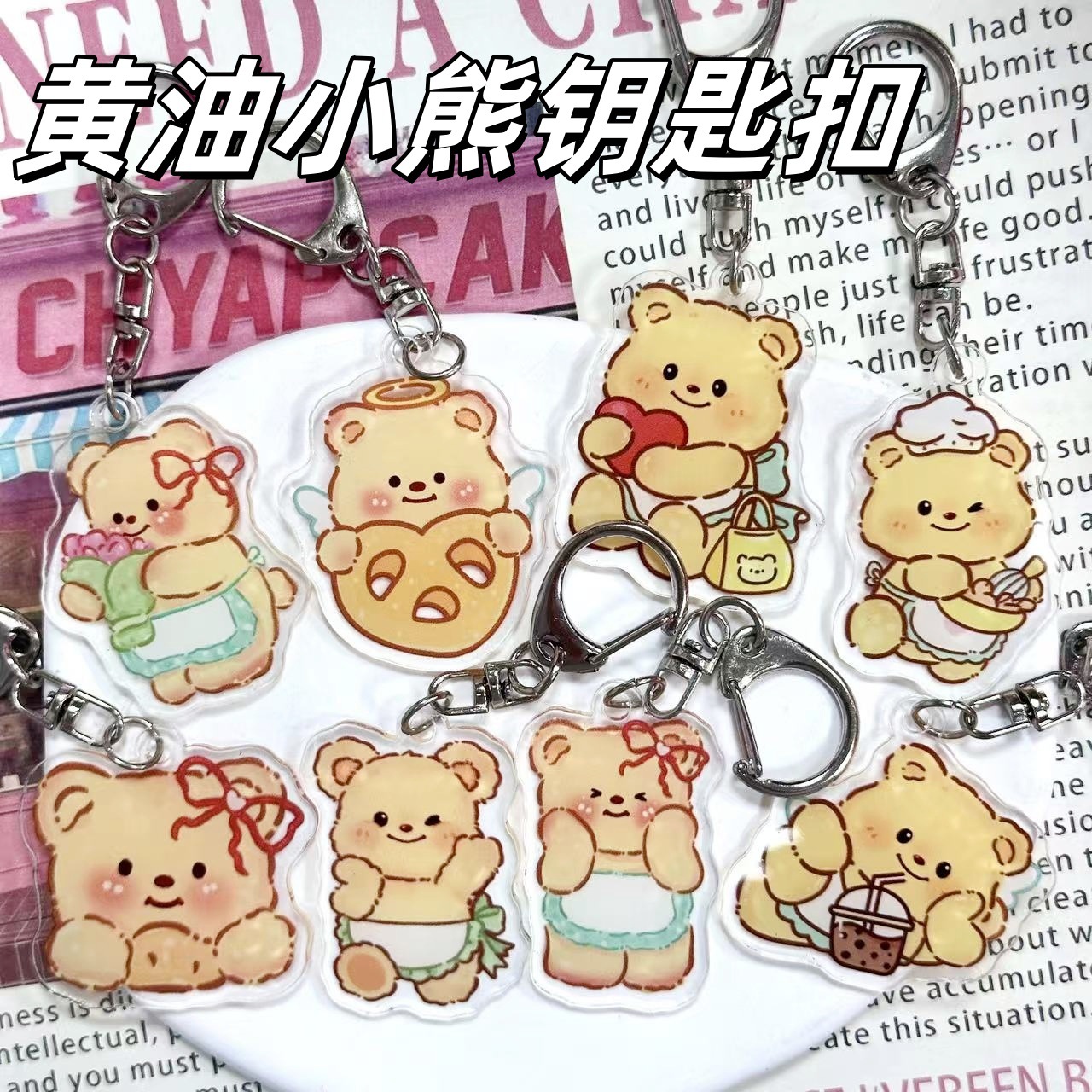 漫画バターベアキーホルダーアクリルキーホルダー高価値インカップルペンダントスクールバッグ親友ペンダント