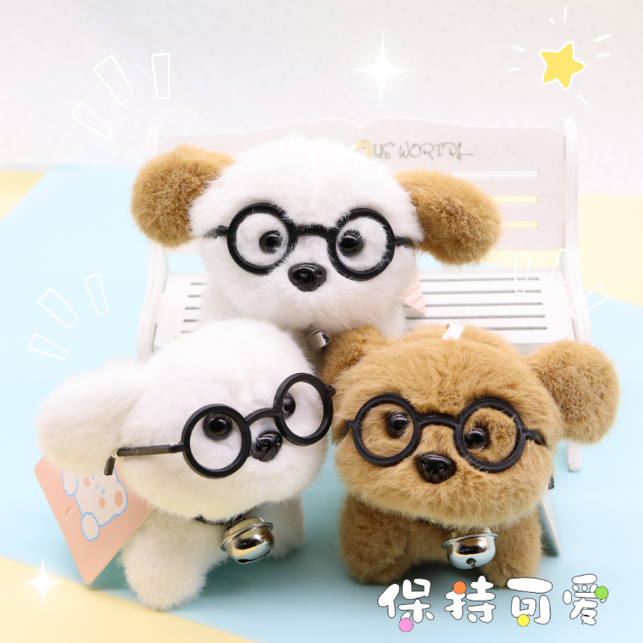 ネットの赤いかわいい超萌えメガネの子犬のぬいぐるみのペンダントのぬいぐるみのアクセサリーのペンダントのキーホルダーの卸売り