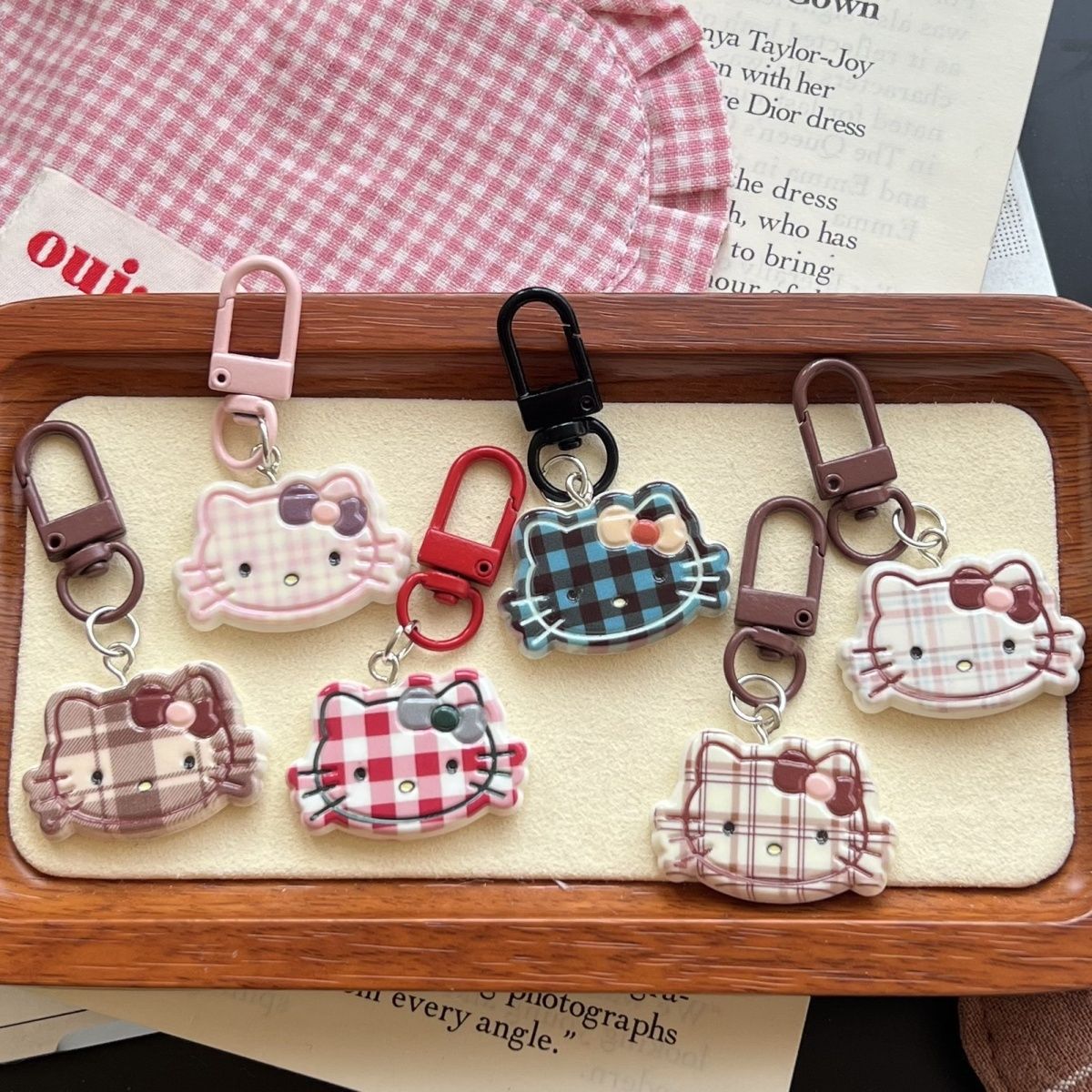 新商品の可愛い格子縞kt猫のキーホルダー秋冬米カレー百合少女心かばんストラップ親友カップルストラップ