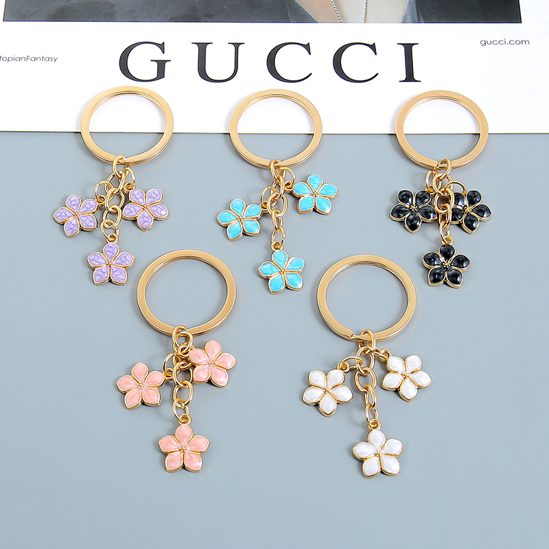 合金桃の花ペンダントキーホルダーかわいい女の子ハンドバッグ装飾ペンダント五弁の小さな花キーホルダーギフト