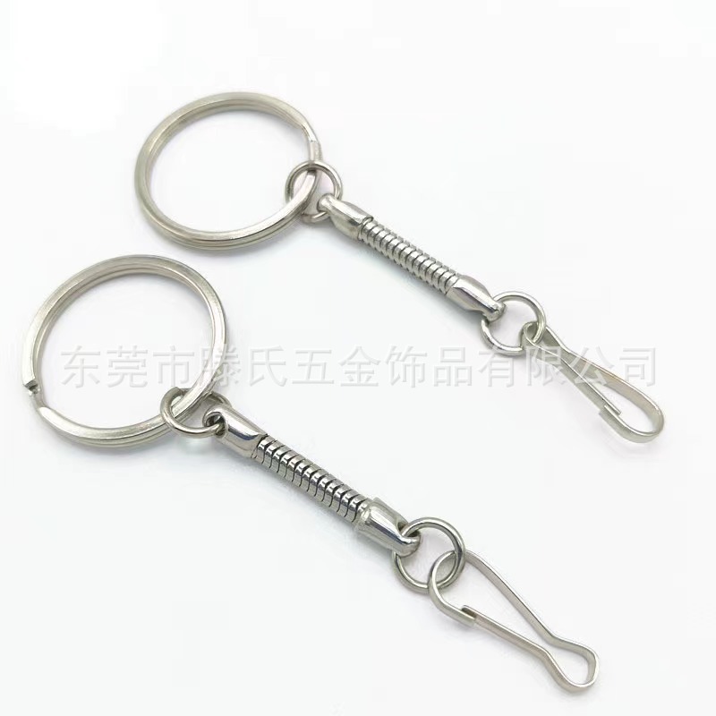 メーカー直供キーホルダーキーホルダーチェーン付き絞り平リング + チェーン + 12ロブスターバックル銀色キーホルダー