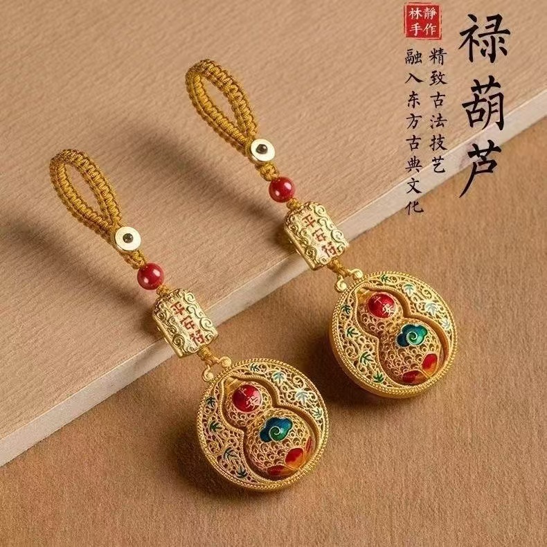 古代の創造的な車のひょうたんキーホルダーキーペンダント安全なキーチェーンスタイルサンドゴールド男性と女性の祝福ペンダント