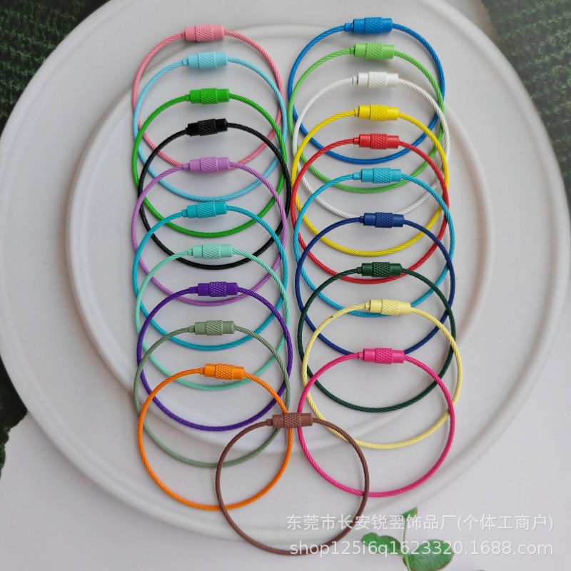 メーカー直営カラー塗装亜鉛メッキワイヤーロープキャンディー色キーホルダータグバッグ漫画鍵ストラップ