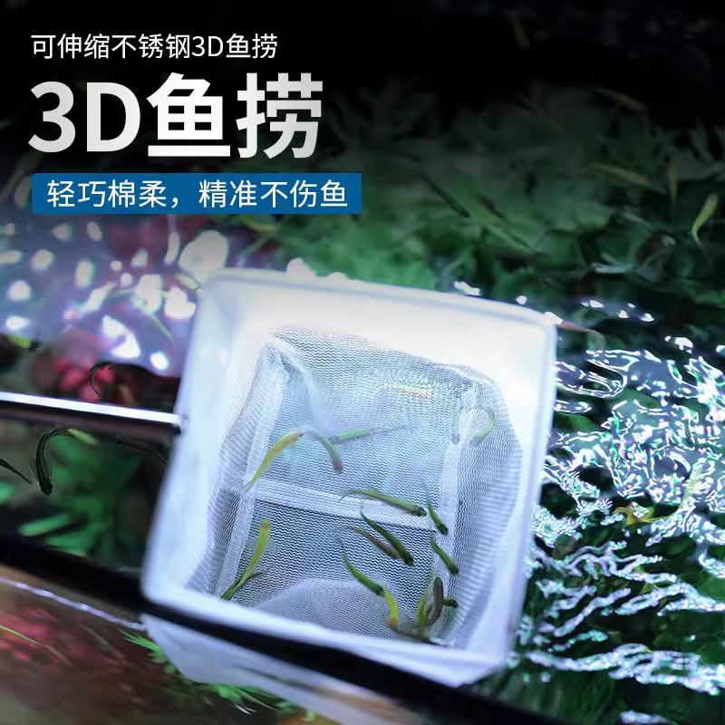 不锈钢可伸缩鱼抄3D捞鱼捞虾 密网 虾捞鱼缸热带鱼观赏鱼捞网厂