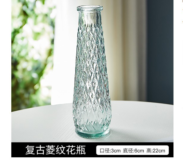 フレンチレトロ小花瓶ガラスレリーフミニクロスボーダー花瓶ins風透明水培生け花リビング置物
