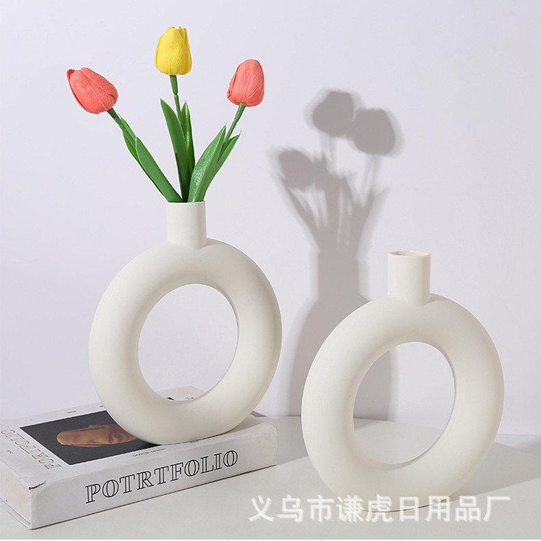 北欧創意芸術乾花民宿置物生け花テレビキャビネットデスクトップシンプル陶磁器花瓶水培艶消し釉薬